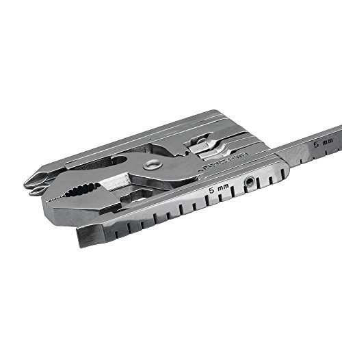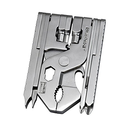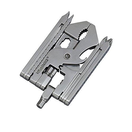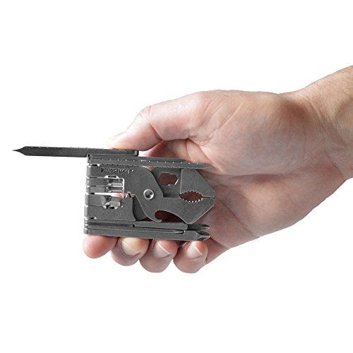 Swiss+Tech introduces Palm-Grip Tools, heavy-duty, compact and rugged. The Micro-Max Xtreme puts 22 tools in the palm of your hand. A full-sized tool when opened and a compact pocket tool when closed. Integral locking system keeps legs in place when open or closed. Constructed of heavy-duty stainless steel, this tool can handle a wide variety of repair tasks. Great for the toolbox, glove compartment and emergency kit. Comes in handy around the house or in the garage. Can even be hung from a tool belt or knapsack using patented locking mechanism. Lifetime Limited Warranty. Features: 4mm Allen driver, 5mm Allen driver, 6mm Allen driver, 1/4 inch wrench, 7/16 inch wrench, no. 0 Phillips, no. 1 Phillips, no. 2 Phillips, no. 0 flat driver, no. 1 driver, no. 2 driver, pliers, wire cutter, wire crimper, hand drill, file, bottle opener, inches ruler, inches ruler extension, mm ruler, and mm ruler extension.Feature