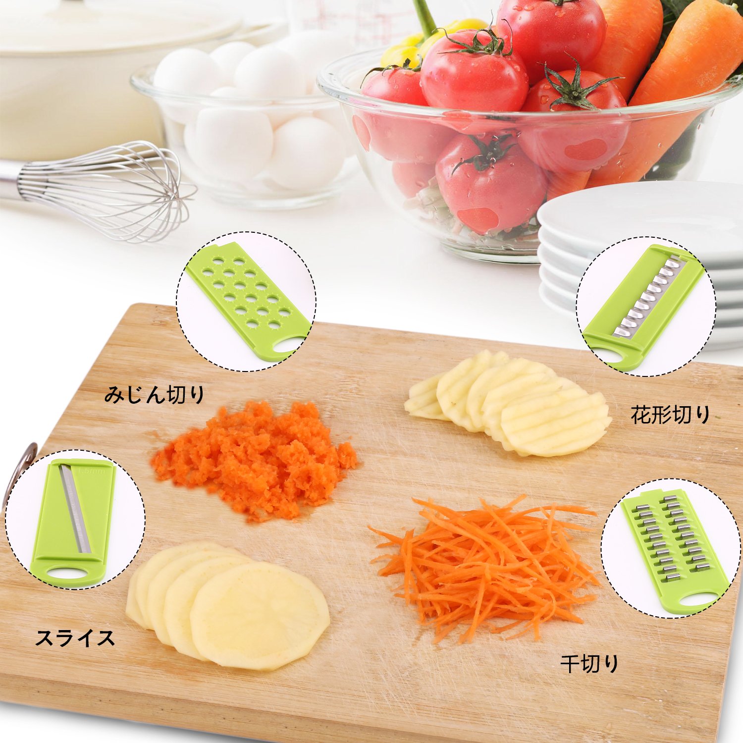 The thickness of the slice is about 1 mm and draws out the taste of the vegetables in the very thin.