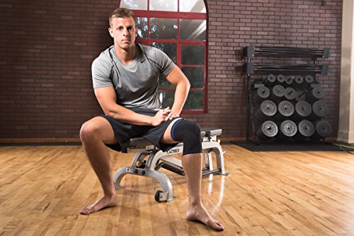 -. Feature : Flat Knit, an advanced horizontal knitting technique, allows for customized stitching to achieve 3D shaping of the fabric, providing optimum fit / Breathable, multi-directional stretch fabric contours to your knee area, providing optimum support / Allows full range of motion while maintaining high level support / Non slip gel prevents migration / For sizing measure circumference just above the kneecap