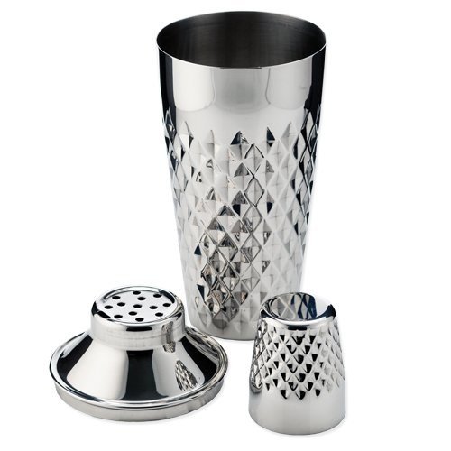 -. Feature : Divided with diamond shapes to catch light and eyes atop any bar / The shiny-bright diamond cocktail shaker grips comfortably with minimal coldness in your hand thanks to its textured design. / Accommodates 25 oz comfortably, stainless steel construction / Built in strainer, diamond hammered finish / Dimensions: 4in x 4in x 11in, weight: 1 lbs.