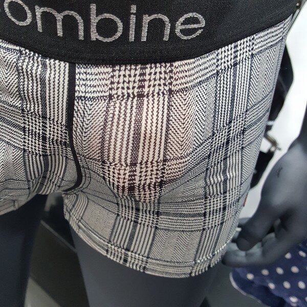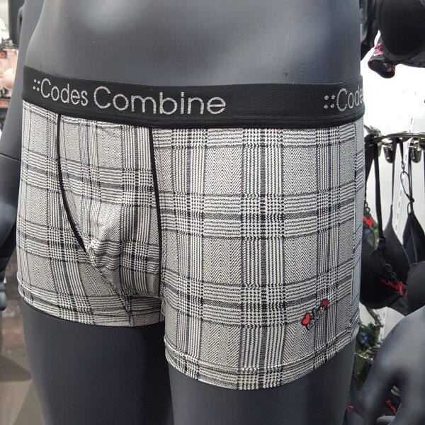 체크 패턴 스타일에 블랙 아웃밴드에 그레이색 로고로 포인트 된 남성 드로즈입니다. 편안한 착용감을 주는 제품입니다.