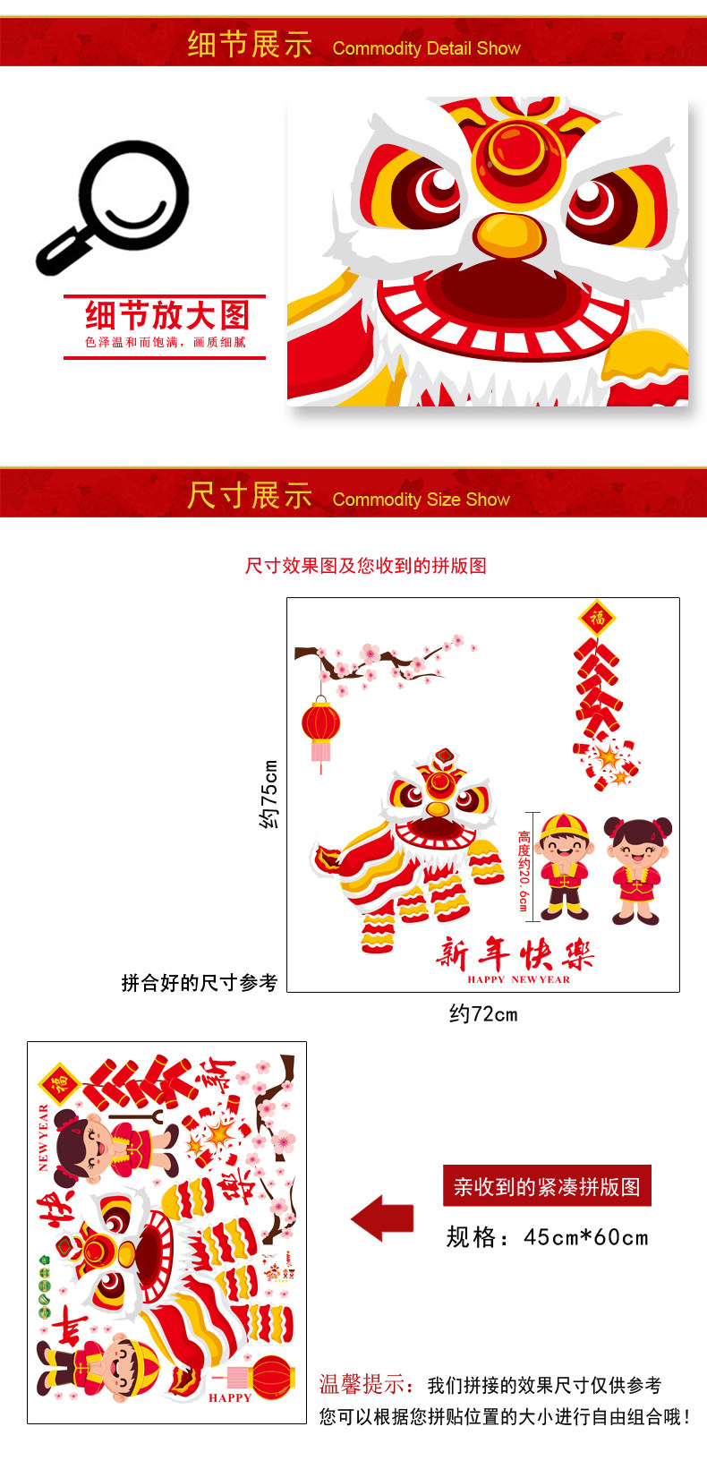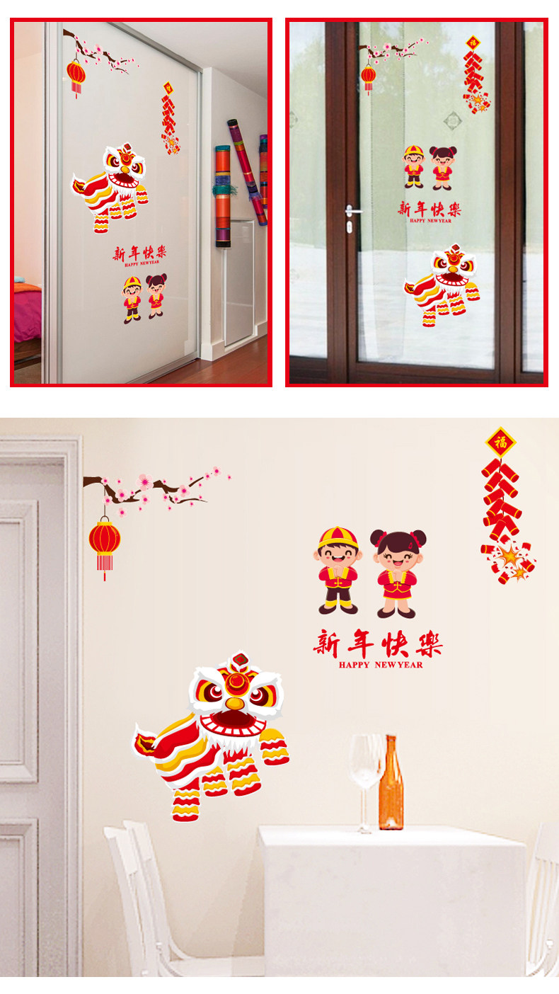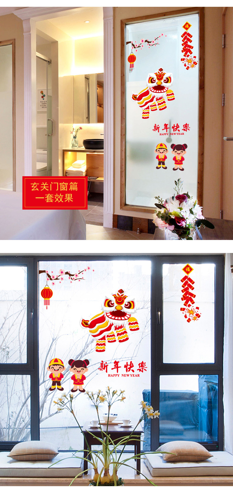 新年快乐春节元旦店铺布置装饰品窗花橱窗贴纸墙贴画可移除