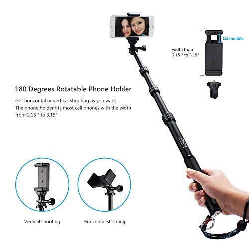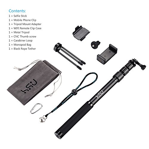 HSU Waterproof Selfie Stick,Handheld Monopod Pole with Phone Clip Holder,Tripod for Gopro Hero 5,Session 5,Hero 4/3+/3/2 Action Cameras,iPhone Series and Other Smartphone