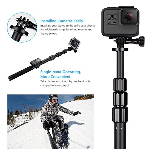 EXCELLENT QUALITY-Durable aviation aluminum alloy body material and CNC aluminum alloy thumb screw,make the pole to be a very exquisite and stable enough to withstand your GoPro Hero 5 and other action camera.