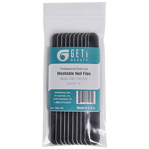 GETi BEAUTY (10 pieces) 100/180 Grit Nail Files Made in U.S.A with Quality Professional-Grade Sand Paper Emery Washable & ‘Disinfectable’...