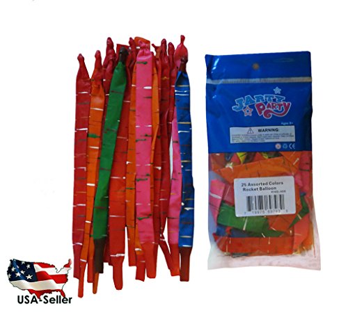 -. Feature : LET THE FUN BEGIN!Are you looking for the best, long rocket balloons to add the finishing touch to yourkids'parties?Then look no more! With eye-catching, vibrant colors and amazingpatterns, these balloons are a must-have for any celebration! Great for anniversaries, birthdays, wedding decorations, bachelorette parties, baby showers and more! / BEST QUALITYON THE MARKET:Proudly made in the USA using top quality, extra thick latex, these rocket balloons are by far the most durable on the market. Forget about popped balloons and disappointed children's faces! Save money and get equipped with a set of premium quality flying balloons that will outlast all your previous ones. / GET MORE BALLOONS& STRAWS:Why waste your money on a pack of balloons that are barely enough for one children's party? Unlike others on the market, we have included a total of 100 balloonsinside each pack and 20 inflating straws for extra fun! Each balloon grows up to 30 when fully inflated (do not exceed the recommended size!). / INFLATE IN A BREEZE:Thanks to their convenient whistle design for effortless and fast inflation, these party balloons are easy to inflate in just seconds! All you need to do is use the included straws or a balloon pump, blow them up and watch them fly in the air! / ECO-FRIENDLY & SAFE:These balloons boast 100% latex and biodegradable material, making it an eco-friendly choice for every environmentally conscious parent.Please keep them protected from light and heat to extend their life. So why wait? Grab your 100 pack of rocket balloons today and get the party started!