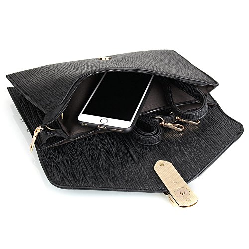 Size: 11.4"(L) * 2\"(W) * 6.9"(H) Closure type: center folding frame with designer closure Occasions: wedding/prom/party/black tie/show/cocktail/night out Fit enough: cell phone/small wallet/mirror/lipstick/makeups/cash/credit card/car keys/ Package Included: