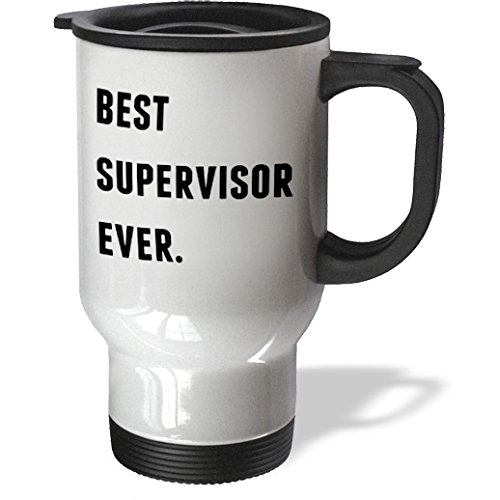 3dRose tm_213368_1 Best Supervisor Ever, Black Letters on a White Background Stainless Steel Travel Mug, 14 oz, White