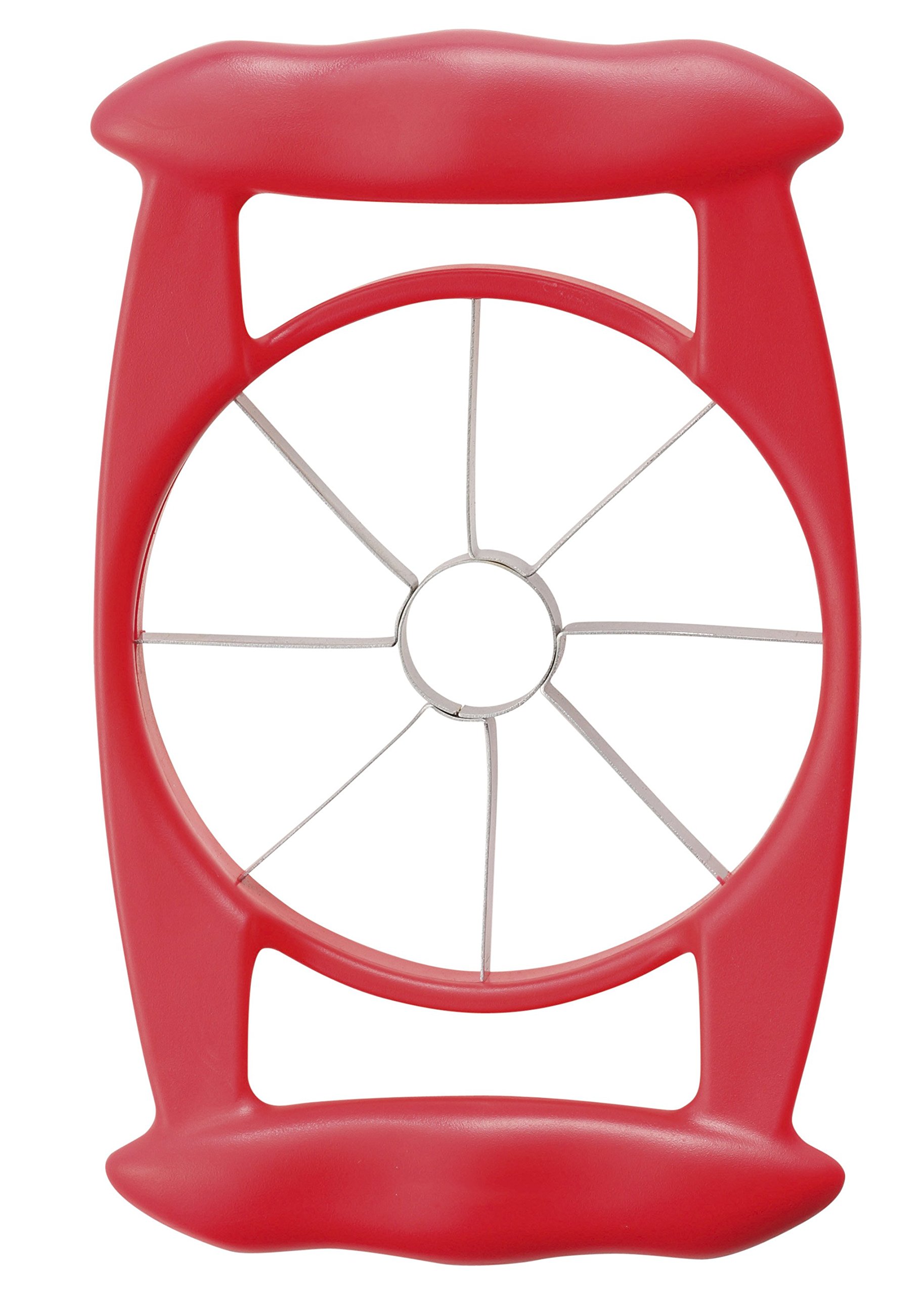In one action to push down along the core of the apple, convenient item that can be divided into 8 equal parts by piercing the core!