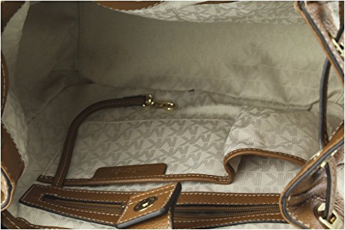 -. Brand : -. Department : women's -. Feature : Soft Venus leather; lining: polyester / Exterior features gold-tone hardware and 1 front snap slip pocket / Interior features 1 zip pocket, 4 utility pockets and key clip / Double handles with 10" drop / 15-1/2" W x 11-1/2" H x 6" D -. ProductGroup : Shoes -. ProductTypeName : HANDBAG -. Size : Large -. Title : MICHAEL Mae Large East West Drawstring Tote