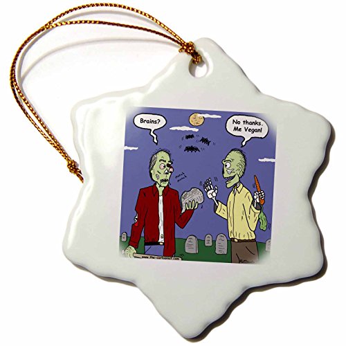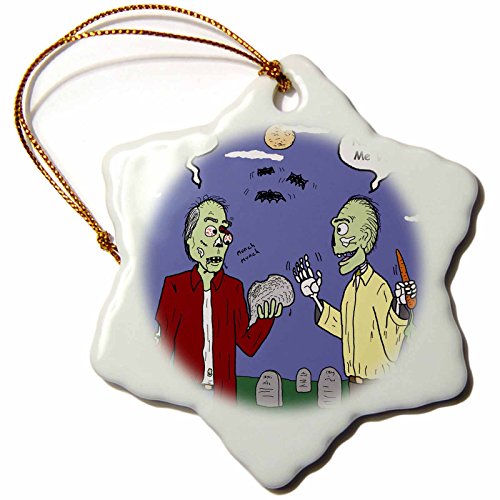 3dRose Halloween Zombie Vegans Snowflake Porcelain Ornament, 3-Inch