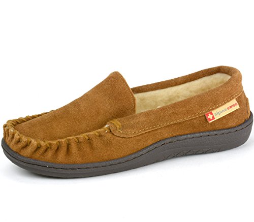-. Title : Alpine Swiss Sabine Womens Suede Shearling Slip On Moccasin Slippers