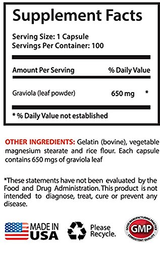 Studio : Sport Supplements, LLC Publisher : Sport Supplements, LLC Binding : Health and Beauty Product Description Natural immune booster - GRAVIOLA 650MG - Graviola leave - 3 Bottle (300 Capsules) GRAVIOLA 650MG MAINTAINS HEALTHY HEART: Our product contains vitamins that are essential for facilitating blood circulation thereby contributing to the maintenance of a healthy heart. GRAVIOLA EXTRACT FOR LESS EYE PROBLEMS: The antioxidants in our product, can be used to decrease the risk of eye problems and oxidative stress. Also our product can help lower the risk of developing age-related distortion or loss of central vision. GRAVIOLA HERB BENEFICIAL FOR SKIN CARE: Our product can be very beneficial to releasing antioxidants that can help fight against free radicals which causes the skin to start wrinkling and heavy pigmentation. GRAVIOLA SOURSOP PROMOTES SLEEP: Graviola can be used to promote sleep because of its mild sedative affect that can prepare the body for rest without causing loss of clarity or grogginess. This will make you become relaxed and then, you will get a quality sleep at night. 0