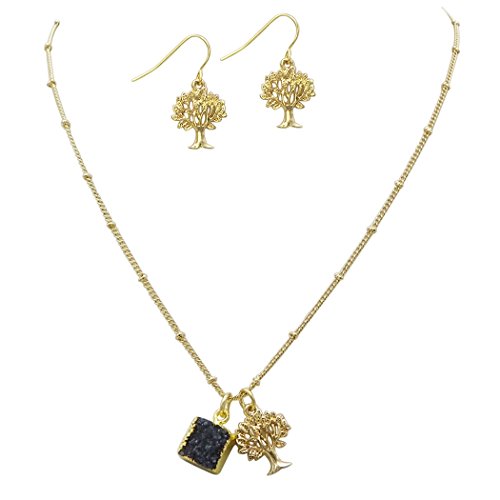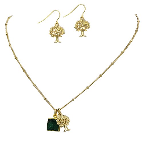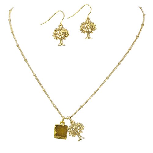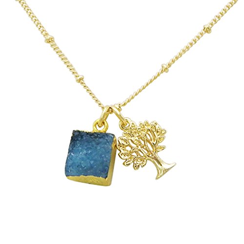 Simple strand necklace with a natural druzy stone and a detailed tree of life charm