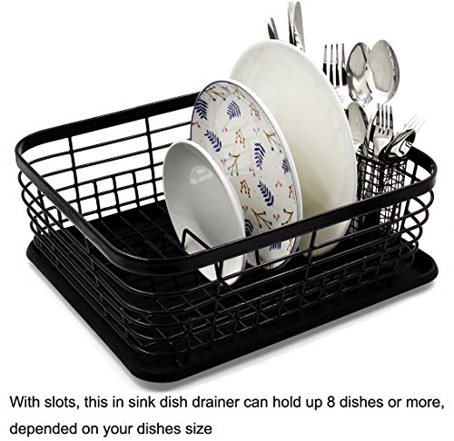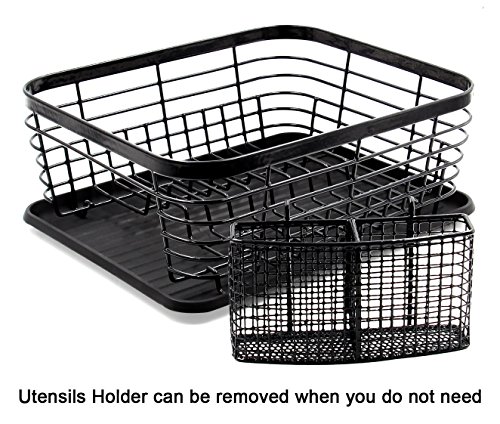 Including a plastic water tray, let it not just sit in kitchen sink, but also on counter-top both the dish drying rack and the utensils holder have been thicken, durable and sturdy enough
