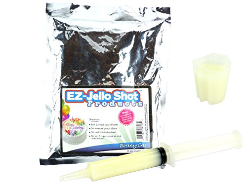 -. Feature : Non alcoholic Powder - Just add your favorite alcohol drink / Great for college parties, nightclubs, pool parties holidays and more / Approx 30 shots if using the 2.5oz EZ-InjectTM Jello Shot Syringes / Approx 35 shots if using the 2oz EZ-SqueezeTM Jello Shot Cups / Approx 40 shots if using the 1.5oz EZ-InjectTM Jello Shot Syringes