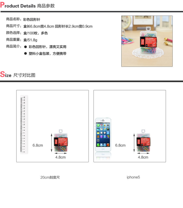 韩国创意办公用品 彩色多色可爱回形针埃菲尔铁塔盒装100枚