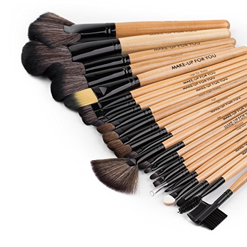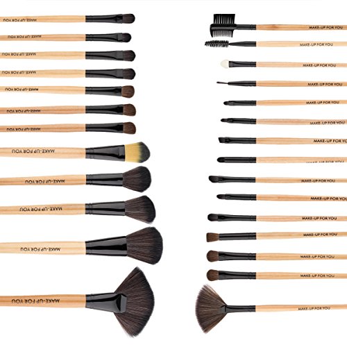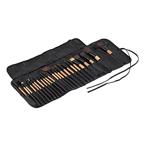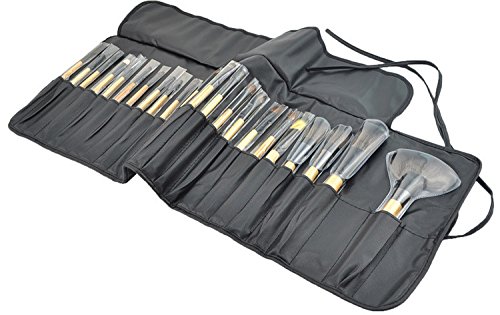 -. Feature : Material:soft hair and synthetic for brush, wooden handle; Faux Leather for Pouch; Size:57.5x23.5cm/23x9inches / Include all necessary brushes with a handy and portable roll up wine red leather case. / Easy to carry: the beautiful carrying case is designed for holding and assorting all brushes. / Great for applying powder,foundation,blush,and eye shadow,concealer,lip,spoolie,and mascara etc. / Essential for not only professionals but also home users and first leaners of makeup.