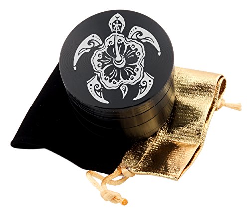 Hawaiian Turtle Laser Etched Design 4pcs Large Size Herb Grinder With FREE Scraper & Velvet Pouch Item # ETCH-G012317-121
