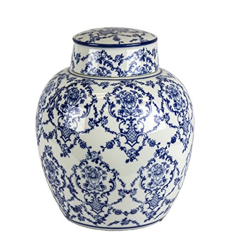 - Decorative lidded jar, Crackle Blue/White, 8.5" x 8.5" x 10"