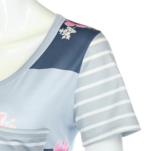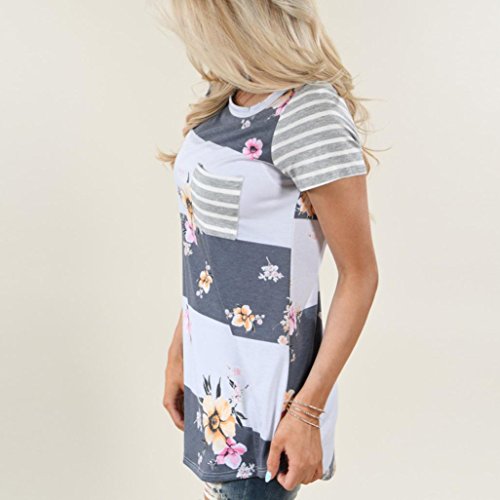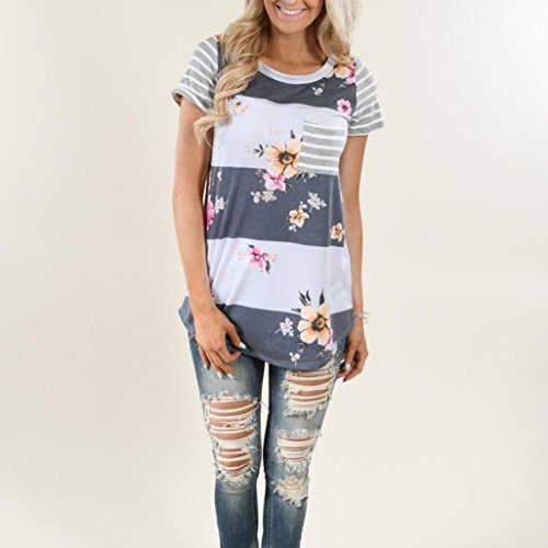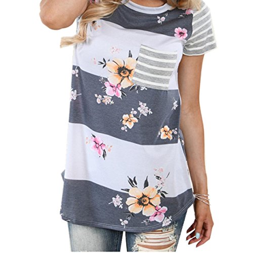 (YANG-YI)/Pretend Play Dress-up/Puppets Puppet Theaters/DIRECT FROM USA/YANG-YI Women Striped Floral Print Short Sleeve Blouse Tops T Shirt Round Neck (M, Gray)