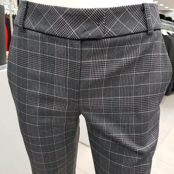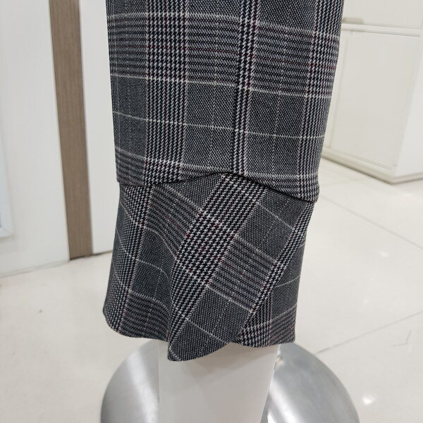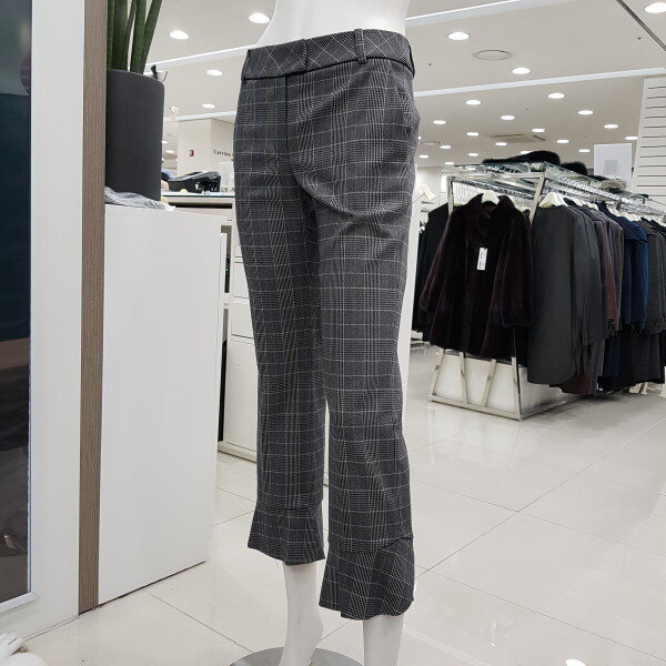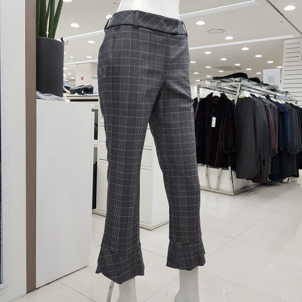 밑단 프릴로 멋스럽게 ~~정장 캐쥬얼에 스타일러쉬하게 코디가능~~체크와 세미 나팔의 부츠컷으로 세련됨을~~