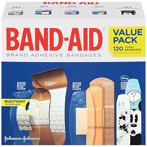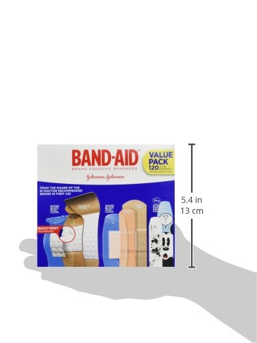 -. Binding : Health and Beauty -. Brand : Band-Aid -. EAN : 0381371158928 -. Feature : Covers and protects minor cuts and scrapes / Basic protection plus more durable, waterproof designs / WATER BLOCK PLUS, SPORT STRIP, and TOUGH-STRIPS included / Variety pack of BAND-AID Brand Adhesive Bandages / 120 sterile Adhesive Bandages -. Label : Johnson & Johnson SLC -. Manufacturer : Johnson & Johnson SLC -. PackageQuantity : 1 -. ProductGroup : Pantry -. ProductTypeName : HEALTH_PERSONAL_CARE -. Publisher : Johnson & Johnson SLC -. Studio : Johnson & Johnson SLC -. Title : Band-Aid Brand Adhesive Bandages Variety Pack, 120 Count -. UPC : 381371158928