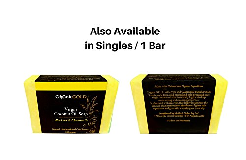 -. Feature : Effectively aids in fighting and treating acne and eczema causing fungal infection. Naturally containing anti-fungal, anti-bacterial and anti-viral properties due to healthy fats lauric acid, caprylic acid and capric acid. It even acts as natural deodorant against microbe-causing body odor. / Dramatically improves the condition of your skin. Excellent at hydrating, moisturizing, and softening skin because its virgin coconut oil properties are easily absorbed deep into the skin, and replenish natural skin oils due to its Medium Chain Fatty Acids (MCFA's). Unlike other oils and artificial-filled products, OrganicGOLD won't clog your pores as it naturally clears away dirt, grime and dead skin cells. / 100% Organic, Handmade and All Natural facial cleasing and body soap scrub. Natural Exfoliant for Removal of Dead Skin Cells for Smoother, Softer and Fresher Looking Skin. Naturally CURED for at least six months to complete saponification process to ensure a milder, harder, longer lasting bar. Cold Pressed, Cold Processed, Absolutely No Heat (ANH PROCESS) used to allow the retention of nutritional values including monoglycerides and other natural anti-oxidants such as Vitamins E, A and C. Non-GMO, No Parabens, No Petrolatum or Any Synthetic Dyes or Fragrances. / Contains powerful antioxidants which fight harmful free radicals in your skin. These antioxidant properties are ferulic acid and p-coumaric acid that slows down the emergence of brown liver spots on the skin that appears as you get older. An all-in-one natural skin care for all your skin problems. It soothes and speeds healing of wounds and sunburn, helps with rashes, protects against sun damage and keeps tans longer. / Wonderfully hydrating food for the skin that helps in preventing premature aging and supporting the delay in appearance of wrinkles and sagging skin that normally accompany aging. It helps keep the skin's connective tissues strong, as it eliminates dead skin cells and reduces flaking skin. Effectively improving its quality and appearance.