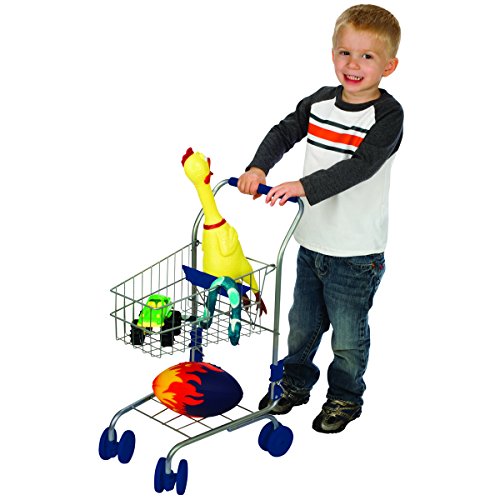 The Toysmith Kids' Miniature Shopping Cart stimulates the imagination and provides hours of playtime fun. This miniature shopping cart is fully functional and perfect for pretend time at home. The cart features sturdy wheels and tough metal wire construction, just like the real thing. This toy is suitable for indoor or outdoor play. Some assembly required. Recommended for ages 3 years and up.