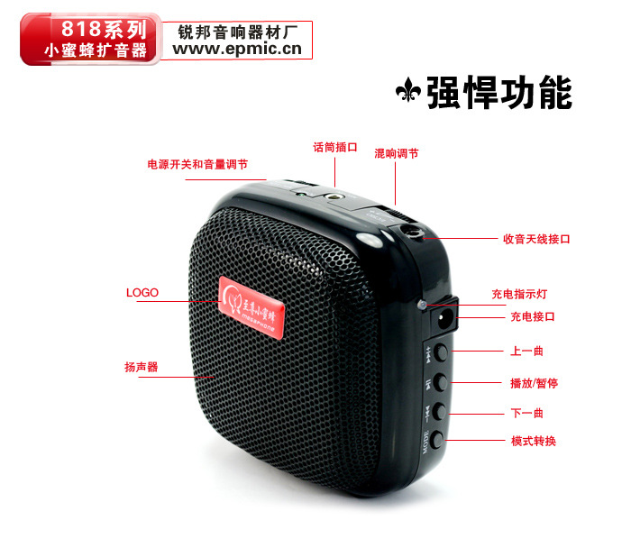 6.Can also be used MP3 speaker. The amp has a microphone input and a MP3 input . The amp will accept signals from both input ports and out through the speaker at the same time.