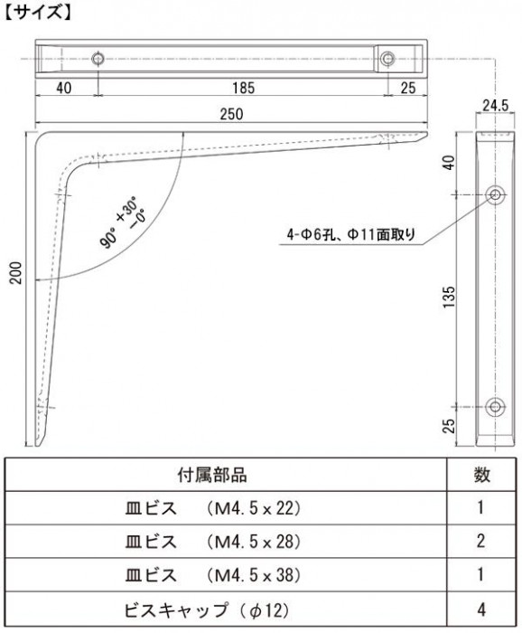 fk094igrjsアルミダイカスト製の棚受です。ビスキャップ付です。 サイズ 個装サイズ:20×25×3cm 重量 個装重量:210g 素材・材質 本体:アルミダイカスト製 ビス:スチール 仕様 耐荷重(1本):30kg 粉体塗装仕上 製造国 中国 シンプルなデザインのアルミダイカスト製棚受。 ※耐荷重は取り付け下地の堅い場所でのご使用を前提としてください。 アルミダイカスト製の棚受です。ビスキャップ付です。