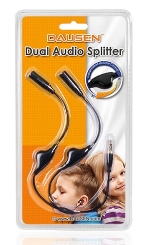 Dausen Smart Headphone Splitter with Separate Volume Control - Retail Packaging - Black