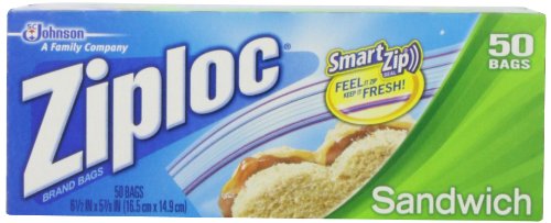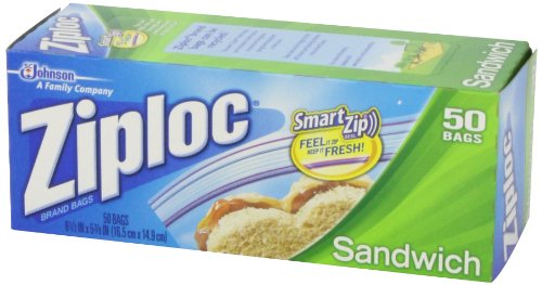 Ziploc Resealable Sandwich Bags, Plastic, 1.2 Mil, Clear, 50/Box