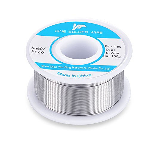 60-40 Tin Lead Rosin Core Solder Wire Reel Roll for Electrical Desoldering Wick 100g/0.22LB/4OZ 0.6mm/0.02 Inch Flux 1.8%