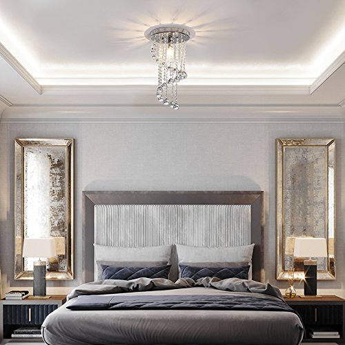 POPILION Romantic Clear K9 Crystal Rotational Shape Flush Mount Chandelier, Modern Chandelier Lighting For Dining Room Decoration