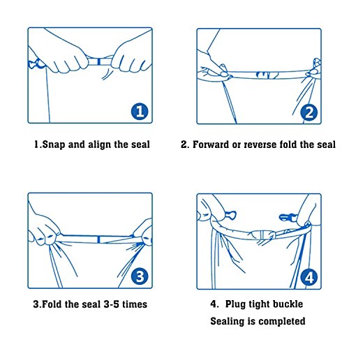 Note: To ensure a waterproof seal, be sure to roll the top a minimum of 3-4 times and securely close the buckle.