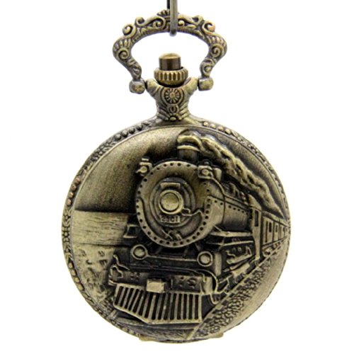 -. Title : E-future Retro Train Vintage Bronze Unisex Quartz Chain Fob Pocket Watch