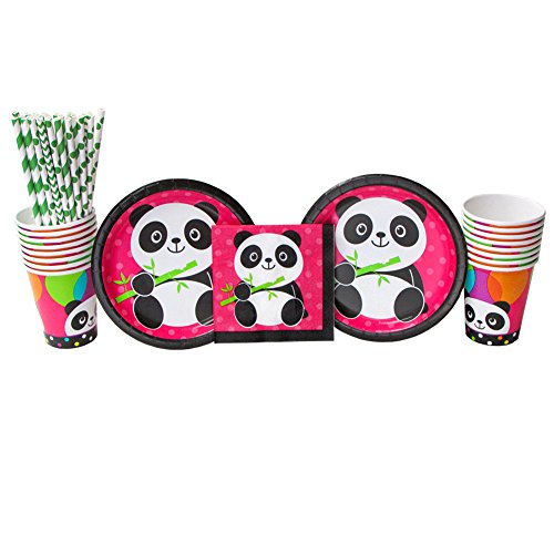 -. Title : Panda-Monium Party Supplies Pack for 16 Guests Includes: Straws, Dessert Plates, Beverage Napkins, and Cups (Bundle for 16)