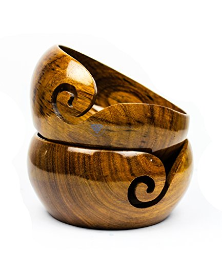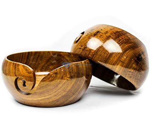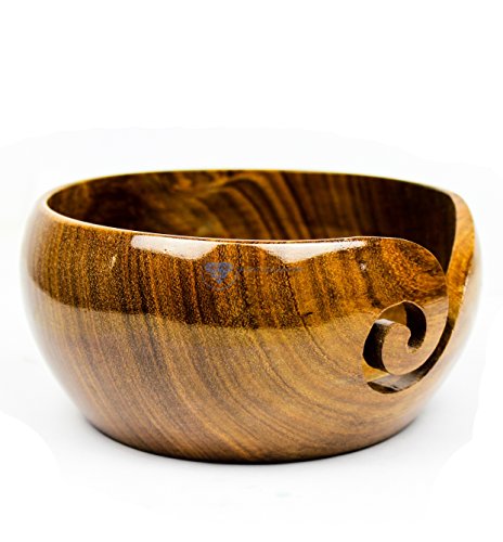 Premium Rosewood Crafted Wooden Portable Yarn Bowl | Knitting Bowls | Crochet Holder | Nagina International (6 x 6 x 3 Inches)