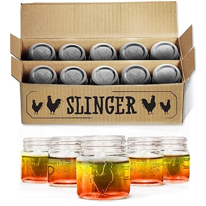 [Product Information]- PERFECT FOR ANY OCCASION. These Slinger Mason Jar Shot Glasses Set come in a 10 pack (with LIDS included), and are perfect for drinking, parties, wedding favors, bridal parties, crafts, making jam or honey, planters, even candle-making and more