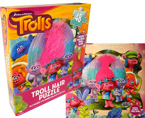 - Trolls Puzzle: 48-piece Puzzle, Features synthetic troll hair, Puzzle size: 10.3 x 9.1"