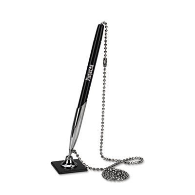 -. Feature : Refillable, ballpoint counter pen features a chrome-plated brass holder and tip. / Chrome-plated brass holder and tip. / High-strength, 24'' ball chain. / Square adhesive base.