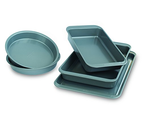 - Includes 2-9 inch round cake pans, 10 x 15 inch cookie sheet, 7 x 11 inch brownie pan, and 9 x 13 inch rectangular cake pan