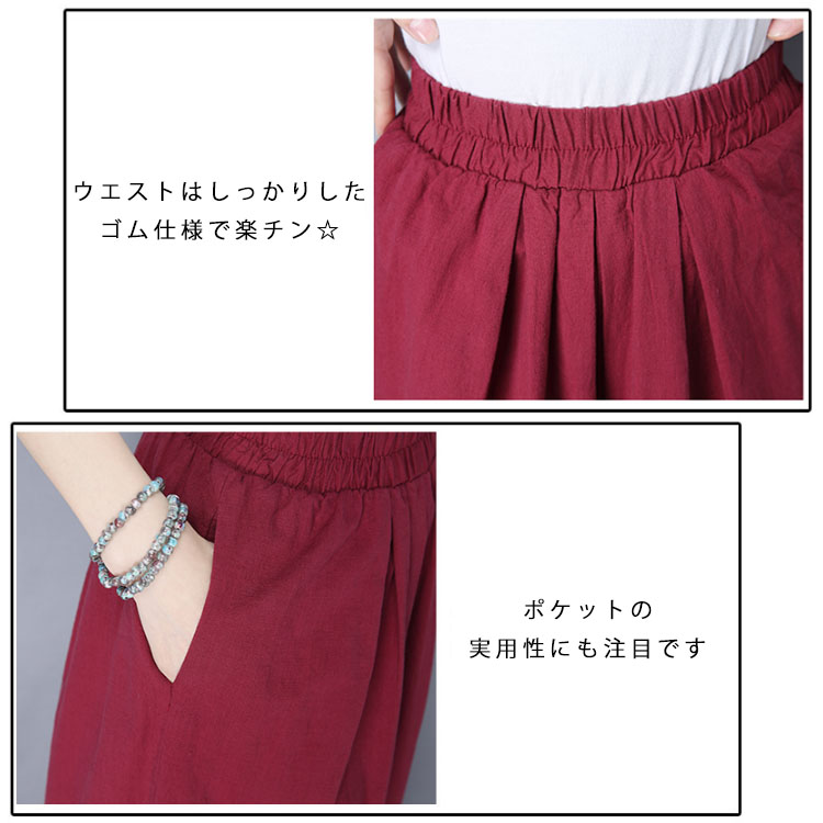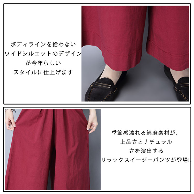 | 柔らかな肌ざわりの綿麻素材は、着姿までふんわり優しげに演出してくれるのが◎気負わず着られる軽い着心地も魅力のひとつです。ウエストはゴム仕様に仕上げ、お腹周りの窮屈感を軽減したデザイン。 毎日の着こなしを彩る、ナチュラルな主役級ガウチョをぜひお試しくださいませ。 | |