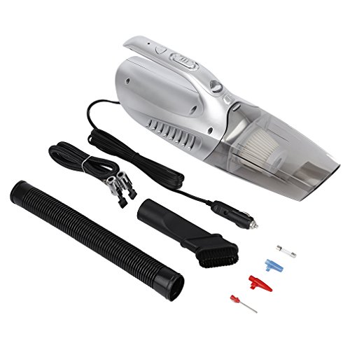 -. Feature : LESHP 4-in-1 Car vacuum cleaner can be used to clean wet and dry debris. Not only use for cleaning up tiny items like crumbs/sand/pet hair, but for LED lighting, tire/ball/toy air inflating and tire pressure measuring. Multi-functions! / Strong suction 100W power with 13ft(4m) power cord,it is also coming with flat crevice nozzle,dust brush and lengthen flexible hose for you to clean every corner of your car easily. Three Extra Valves are suitable for different kinds of tires and sporting equipments, such as basketball, soccer, beach volleyball, bike and so on, making it more convenient and widely use. / East To Use: Yacht streamline appearance design,convenient for disassembly.Easy and handheld to use by directly pluging into 12V car lighter socket. With removable and washable HEPA filter,easy to clean,environmentally friendly and cost saving. / Only need to be pled into the 12V car cigarette lighter socket. Combination of non-slip mat, heat-dissipation hole, fasten button, HEPA filter bag. Dust absorption,LEDs lighting,tire pressure measuring,and tire inflation all in one. / With functional tire Inflator Pump and equipped with three additional valve accessories.Great for all kinds of tires,inflating sports and camping equipment.Any question,please feel free to email us,we response you within 24 hours and provide technical support.