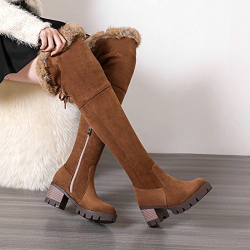 Binding : Apparel Product Description The pair of right shoes can make all the difference. The boots season comes. A pair of long boots is a must-have for a lady who want to be impressed in the crowed. If you're trying to get boots that will send a message with your every step, there's no finer footwear to add glamour close to you than these tall boots from Mofri. These boots don't whisper; they scream with their distinctive and trendy design. This pair of boots make you stand out in any crowd and are sure to heat things up no matter what you wear with them. The block heels raise your height and giving the shoes a chunky shape that is reflection of the latest trends. These shoes from Mofri is made from top quality vegan synthetic leather. Leave those boring basic boots behind. Make this pair boots as your fashion secret weapon and you'll be able to have some sexy appeal which will be the soul of your everyday ensembles. Order a pair in your favorite color! Can't decide? Why not get more? You'll still pay less than the price you would for a single designer pair elsewhere. We will make you always be on the cutting edge of women' s fashion. Mofri is a legal trademark which has registered in United Stated Patent Trademark Office. All right reserved. 0