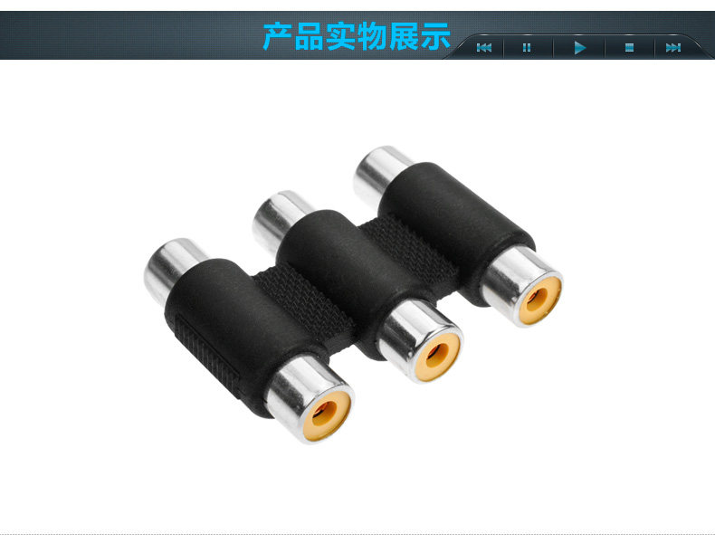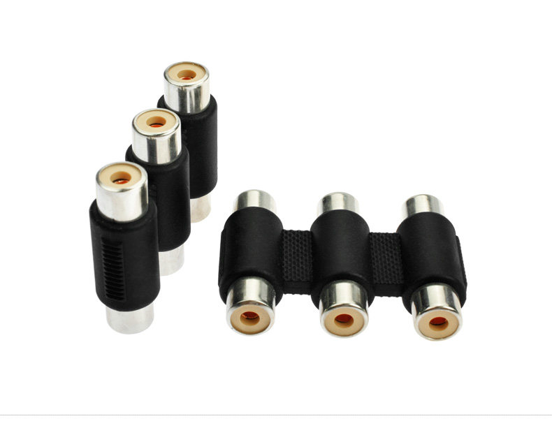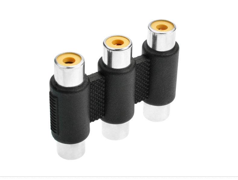 达而稳三莲花母对母直通头供延长音视频电缆所用,通过配合使用音视频电缆,能传输摄像机、DVD、VCD、录像机、游戏机与 电视机之间的音视频信号。