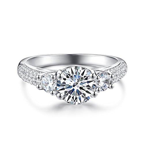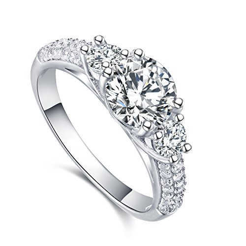 -. Title : GTR4265 S925 Silver AAA CZ Stones 3.0 Carats 3 Main Stone Ring Rhodium Plated