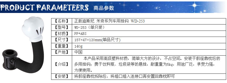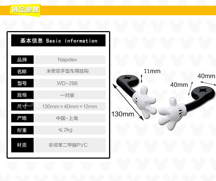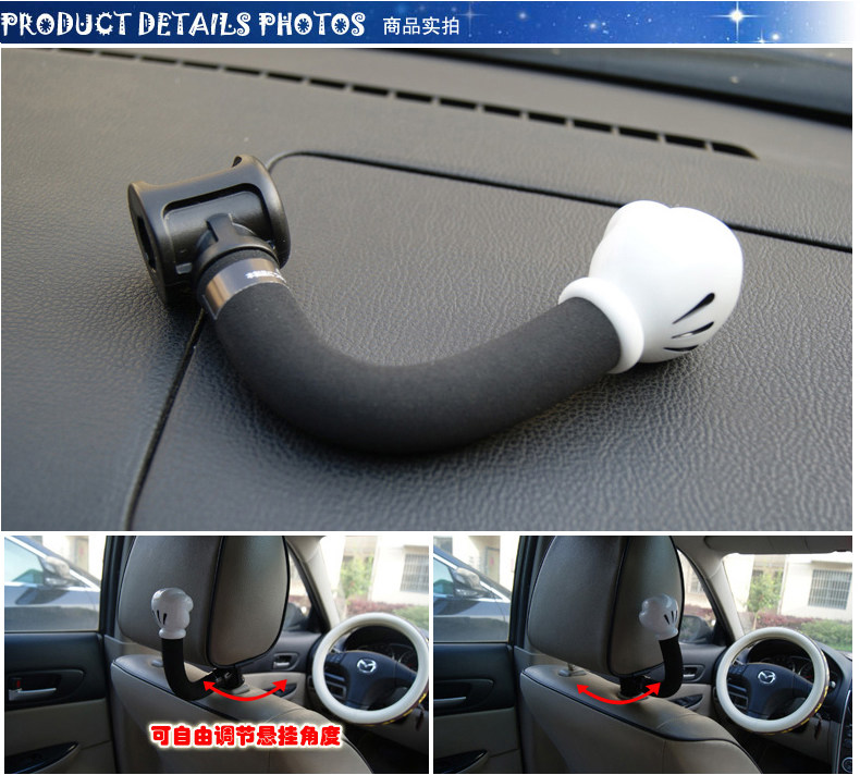 ● This is a cute Mickey Mouse fashion modeling-hand hook. ● Just set into the headrest rods to use, easy to install. ● You can hook on both sides of the rotation.