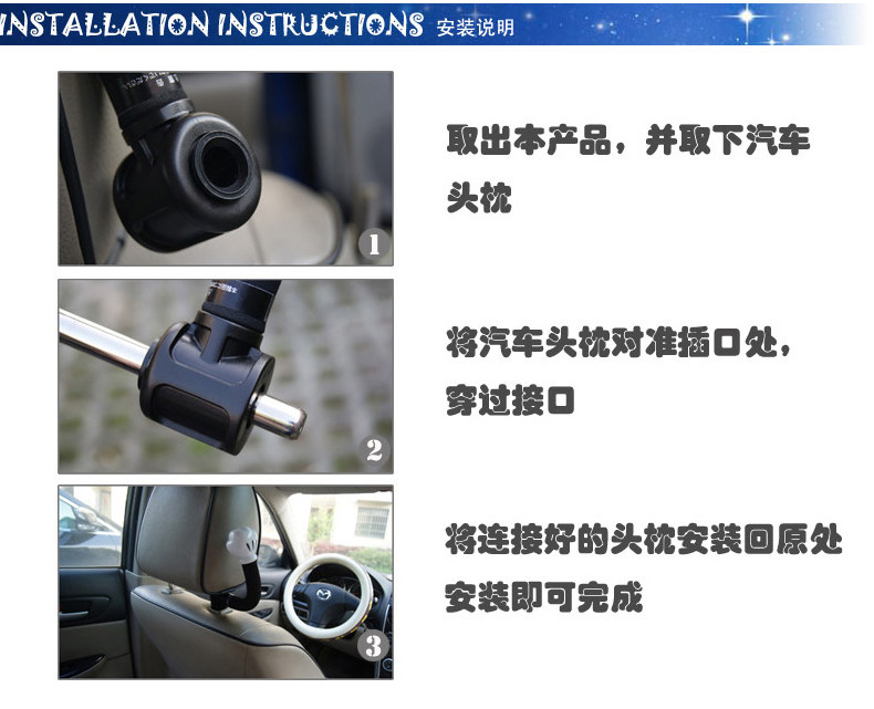 Headrest rods installed in the front row, the anterior rod into the hook hole. Figure (Please note that only applies to detachable front head restraints, 12 ~ 14mm diameter models headrest bars of)